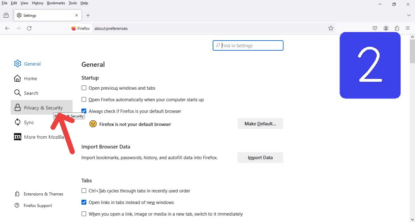 - بعد ذلك، ستظهر تلك الصفحة، قم بالنقر على كلمة “Privacy & Security”.